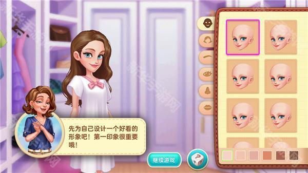 2、自定义一个自己的五官、眉毛、鼻子、发型等,然后点击继续游戏;