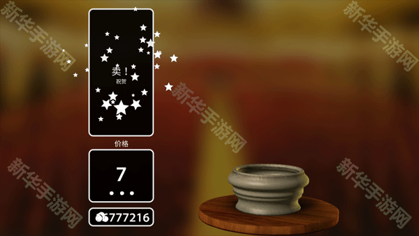 在成品界面点击右下角的拍卖图标,可以将作品拍卖。最开始的作品由于造型和装饰等都很简单,只能卖到几十元,而随着陶器的造型及上色等越来越复杂,价格也会飙升。看着自己辛苦制作的陶器卖出一个好价钱,既高兴又有些不舍。卖出陶器后,我们可以去商店购买颜料、装饰等,用来制作更加漂亮的陶器。