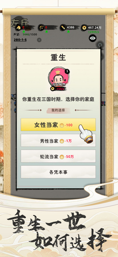 三国人生重开模拟器是一款三国穿越类游戏,由武汉智地卓越信息科技有限公司制作。模拟真实的三国乱世人生,找寻站稳脚跟的家族,体验从零开始的家族经营之旅,在乱世和历史变迁中打造最强的逆袭之旅,娶妻生子、招揽贤士、培养文臣武将、经营逐渐提升的家族产业,更有丰富的角色和随机战国世界,称霸三国,在乱世中不断挣扎求生,选择合适的属性、技能、成就,每一个选择都将决定着家族命运的强盛兴衰,并享受崛起的成就感,挑战最强的家族实时。