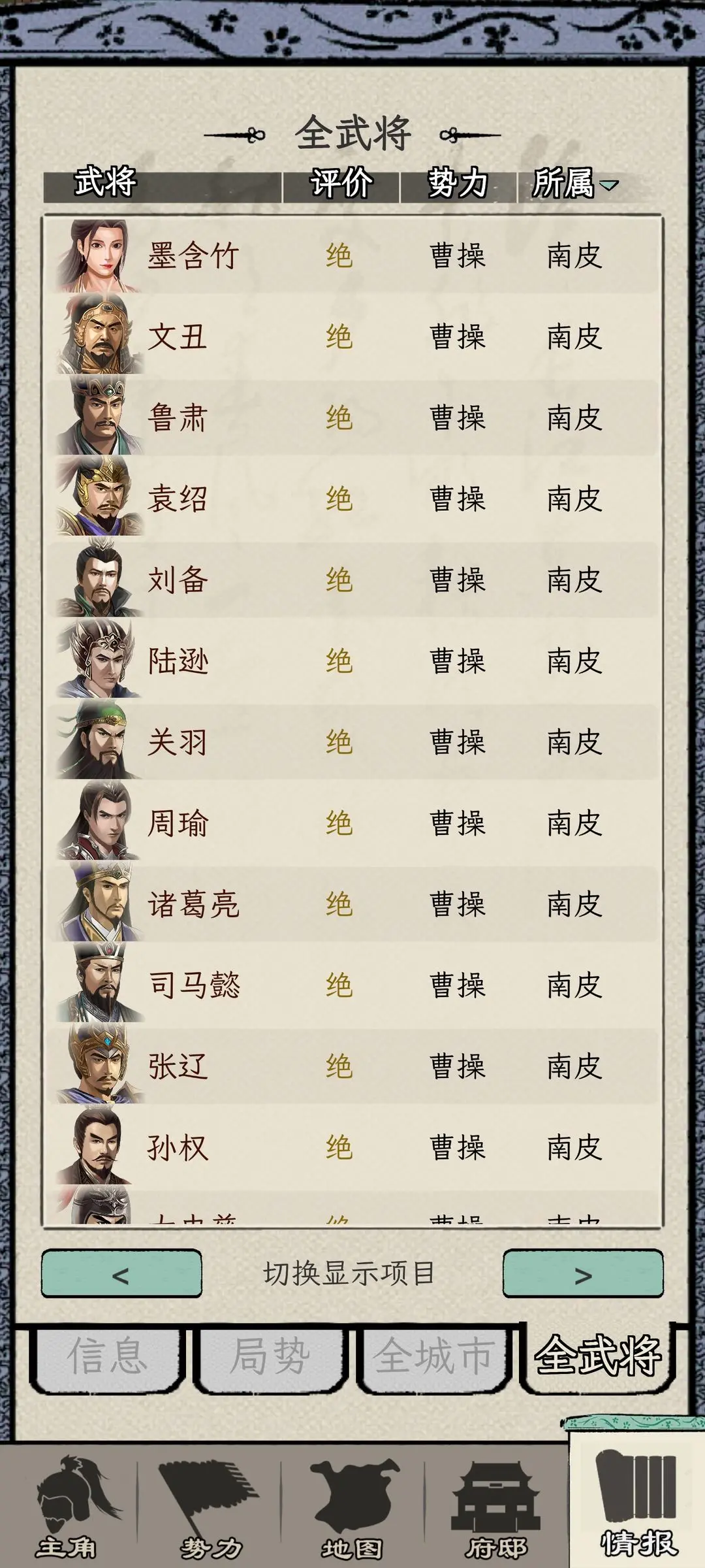 对于非曹老板麾下的绝,收很简单,打下对应城池or灭了对应势力(在情报--全武将那里,可以看所有绝的归属,很方便)。