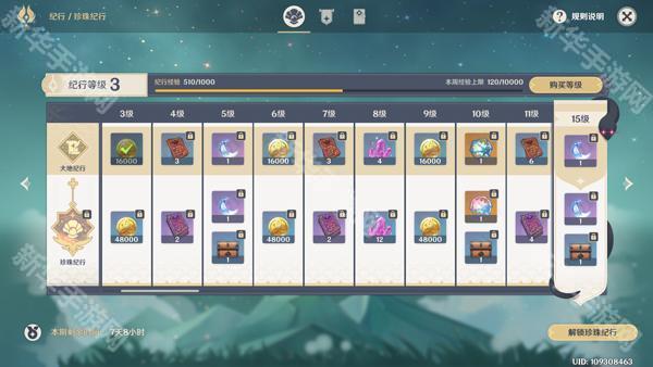 1、纪行:提升纪行等级,每提升10级可获取一个蓝球,即160原石。