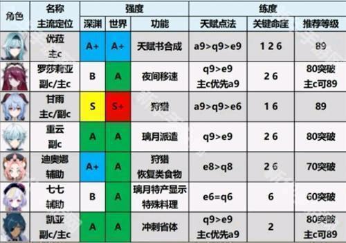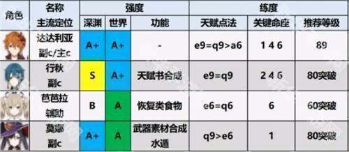 顶尖:阿贝多、莉莉丝、罗莎琳(炎之魔女)、流浪者、旅行者(三元素&全稻妻的愿力)、阿蕾奇诺、八重神子、、枫原万叶(友人之力)、甘雨、旅行者(六元素)、达达利亚、公鸡、富人、花散里