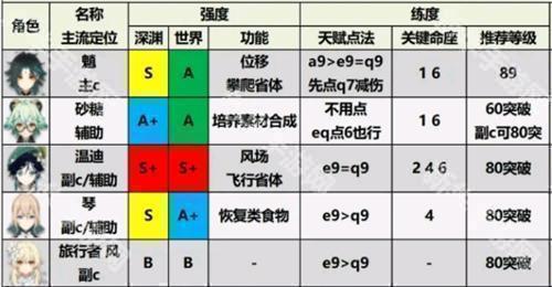 温迪>枫原万叶>琴>魈>砂糖>风主