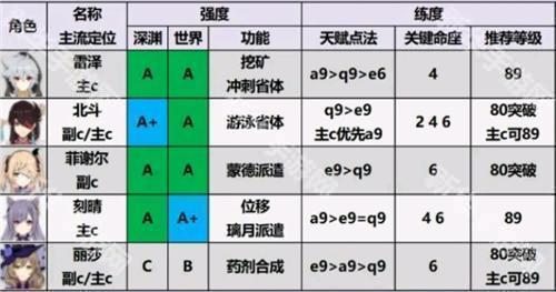 北斗>刻晴>雷泽>菲谢尔>丽莎