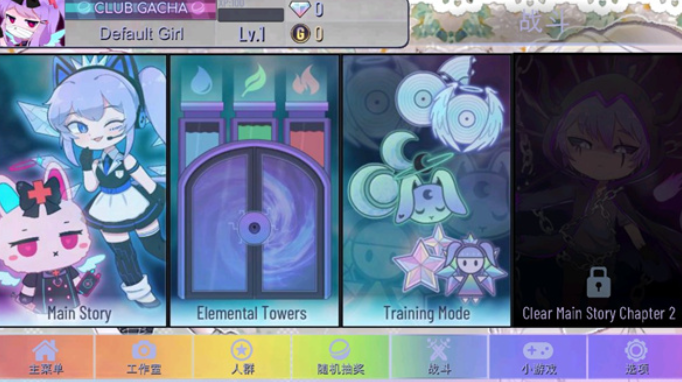 9、接着点击战斗,这里可以选择你要玩的模式、比如剧情模式、训练模式、元素塔等;
