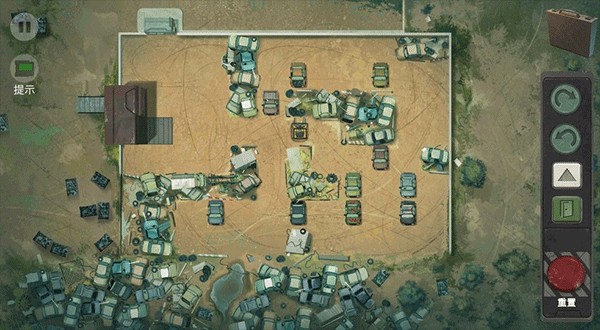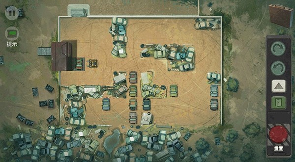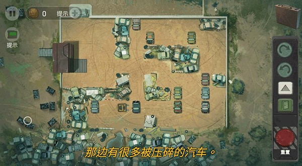 8.将电池装回叉车。将叉车推到指定位置后,用上方控制台(圈出位置)把车压成方块。谜题很简单但是控制很麻烦且解法不唯一,下面详细介绍过程。记得取下钥匙。(此处叉车不开回原位直接离开不会影响完美通关)