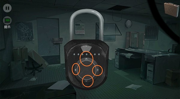 注意!!!挂锁点击下方圆盘上下左右四个边缘输入密码,顺时针为12,3,6,9(你把他当成时钟),点击边缘处箭头。这个着重提一下不然估计是个人都要在这卡半天。