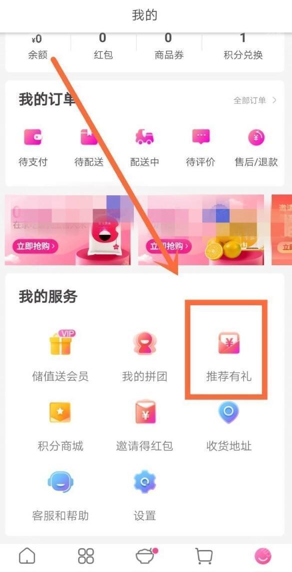 3、进入我的页面后,点击【推荐有礼】进入。