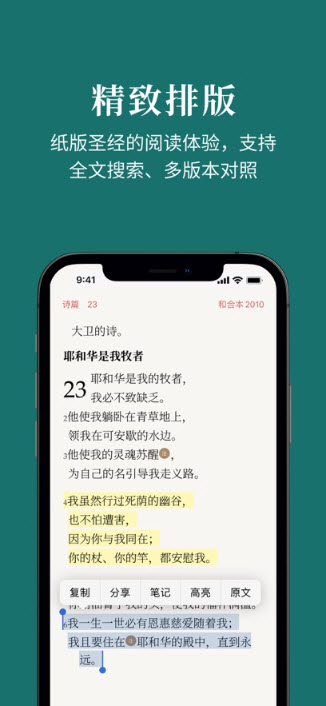 微读圣经免费版是一款优质的啥呢共学习平台。用户可以学习圣经,查看详细的注释解析。软件还收录了多款灵修内容,能够帮助用户培养规律的灵修习惯。