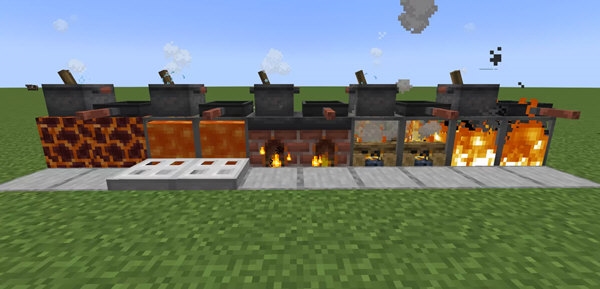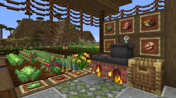 热源:厨锅和煎锅可不能凭空将生食变熟,它们需要被放置在热源上面。篝火,燃烧着的火,岩浆块,甚至是熔岩都可以作为热源(不过,你要阻止熔岩的流动,小心熔岩摧毁了你的厨房)。不必担心不够美观,厨锅和煎锅会自动生成一个架子,让一切看起来十分和谐。当然,如果你还是不满意,或许农夫乐事添加的炉灶是一个更好的选择。这个富有乡土风情的方块既可以充当热源,又可以提供照明,更重要的是可以为你的厨房增光添彩。