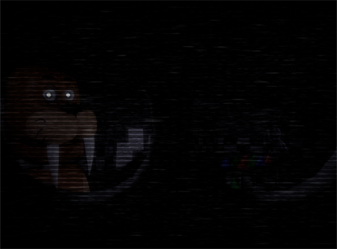 一个浑身被拆毁的玩偶,每移动一次会发出信号被干扰的声音,会路过正门,不过正门无危害性,当你在右管道闪灯看见时,立马戴头套,听见噪声和嗵嗵声(应该)代表她离开,若没及时戴头套或她在时开了监控,她会爬到天花板上,一直戴头套可以延缓跳时间,但再所难逃,你也还可以上几次发条,如果时间不是5点还是退了吧;