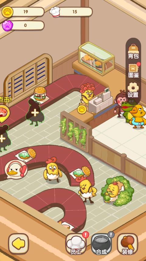 2、为了提高运营效率,玩家可以招募各种有趣的动物员工协助自己,升级厨房设备,提高服务质量。