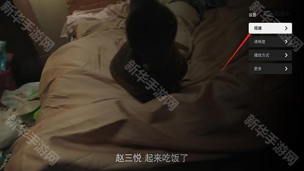 1、先任意打开一个视频,然后点击遥控器的菜单,弹出后选择设置;