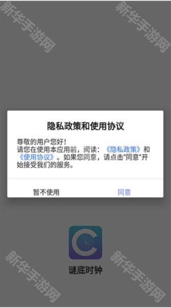 1、安装谜底时钟app,进入软件之后,首先需要同意相关操作协议