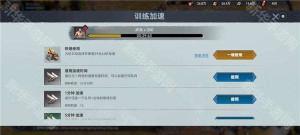 4、通过升级角色等级和训练士兵,增强整体战斗力,逐步建立强大战力。