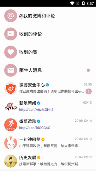 3、用户可以及时收到@、评论和私信,还可发送语音、表情、图片及位置信息。