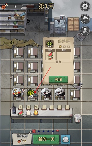 病床上躺着的就是伙伴,点击即可查看伙伴的信息,通过了解伙伴的手艺和信息即可增加生存机会。
