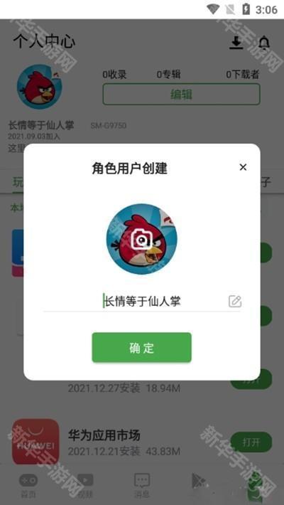 2、然后就创建了一个基础的角色,这个时候还是没有任何绑定的,如果你换了手机就不能登录这个了。