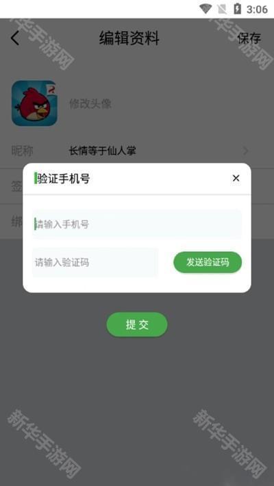 3、我们需要在这里点击编辑资料,然后选择手机号验证。输入手机号码然后接收验证码就可以了。