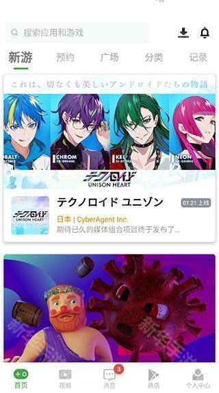 1、打开apkssr软件后,用户可在首页的新游、预约、广场、分类寻找自己的喜欢的游戏;