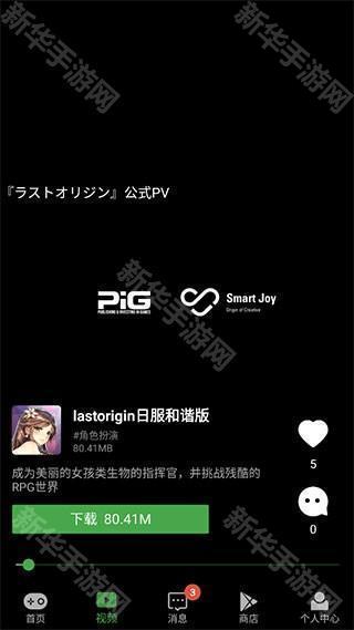 2、视频页面,这是一个软件独立板块,以视频的形式进行推广,以此来通过作品的点赞和评论反馈游戏的质量;