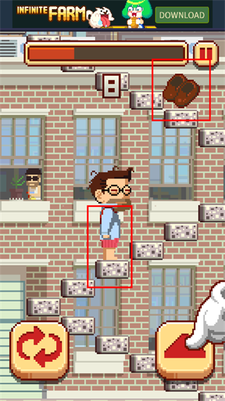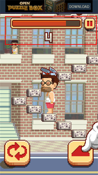 4、在攀爬的过程中要注意上方的进度条,若在进度条消失时还为进行下一步,就会掉落下去噢~