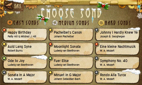 1、选择难度之后,能够演奏许多的热门经典歌曲,感受不同级别的演奏盛宴。