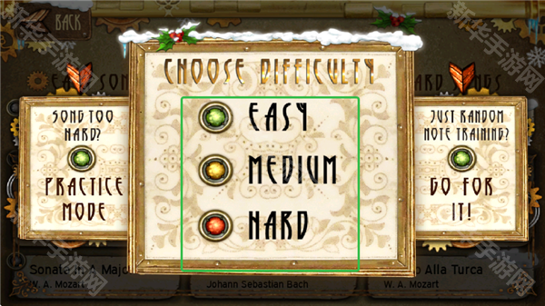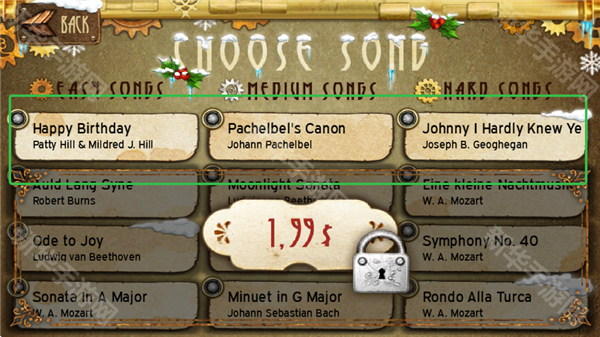 4、选择演奏难易程度,绿色是简单,黄色是中等,红色是困难。