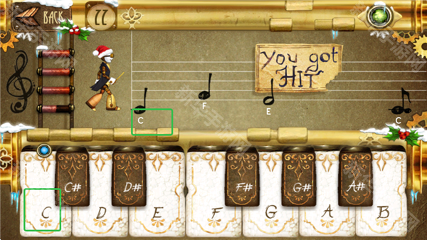 5、开始演奏,玩家需要根据乐谱上的音符来敲击钢琴上相应的琴键。