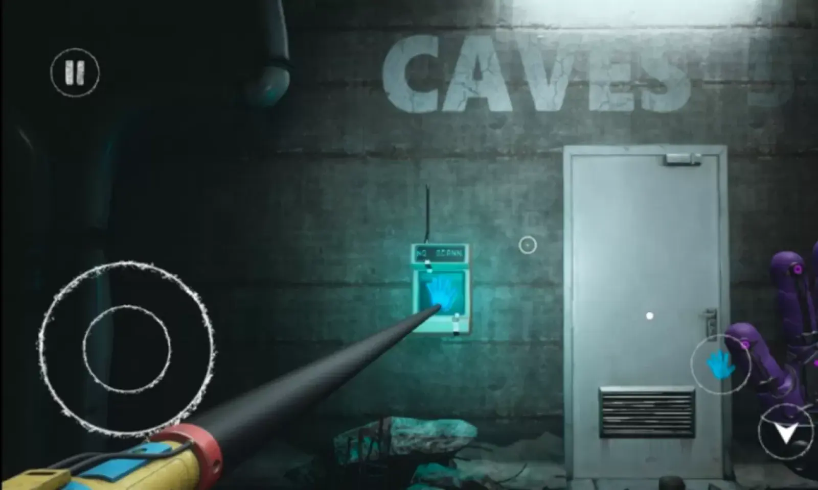 6、开门之后走里面还会有一个开关给他拉下来,往前走进去用蓝色手臂互动一下前面的开关,这里要触发三个开关才能有电流打通出口