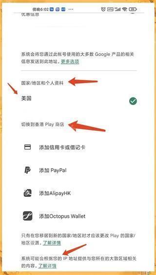 更改Google Play账号所在地区的方法其实并不复杂。首先,你需要将VPN软件切换到你希望更改到的地区,然后再次进入Google Play应用。在相同的路径下,你将看到“切换到某某Play商店”的入口,点击即可完成地区切换。值得注意的是,一年内只能切换一次地区,且当前付款方式中的余额无法使用,需要添加新的付款方式,如Paypal,其申请过程相对简便,仅需提供邮箱即可。此外,地区切换后,生效时间最长为48小时,期间无法进行应用内购买操作,请耐心等待。
