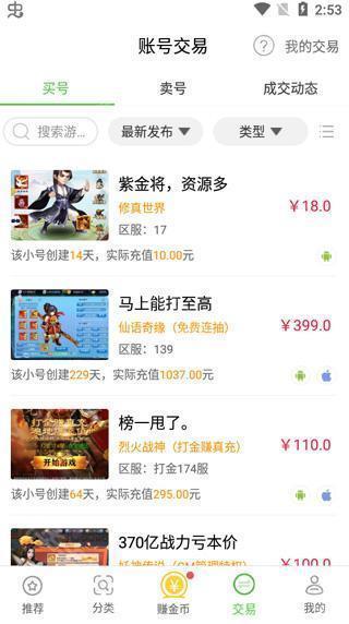 1、最笨游戏盒子支持账号交易,用户可以在这里出售或者购入其他用户的游戏账号。