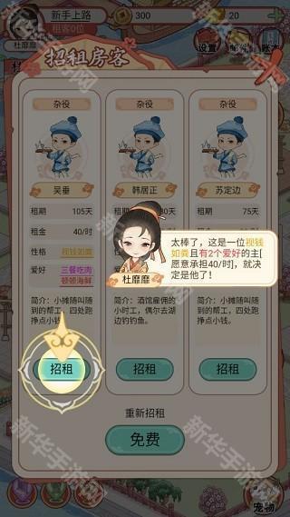 2、然后开始你的房东收租之旅,点击招租按钮来招募一名新的租客;