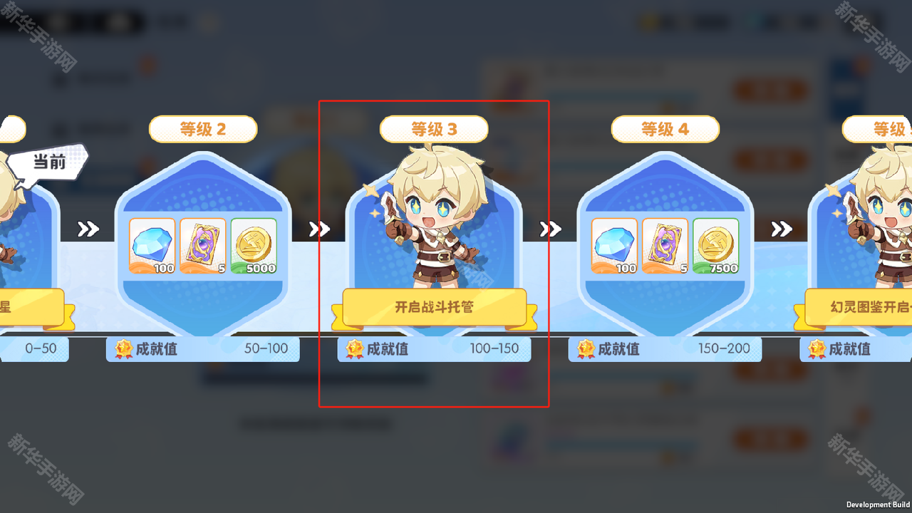 目标2:尽量达成生涯成就任务至等级5,并解锁一键升星,后台战斗托管等日常体验实用功能。
