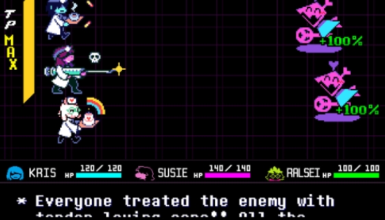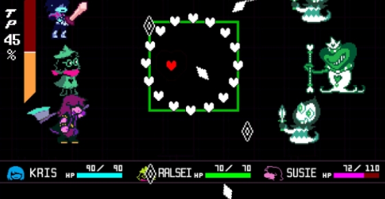 实际上游戏全程都在传达着“不管你做什么选择都没什么用”的意思。战斗中,不管你选择ACT后SPARE还是FIGHT(HP归0的敌人会逃走),你都不会获得一丁点的XP。这有可能意味着,第一章的内容是已经发生的故事,玩家的选择无法改变Kris所做的一切。