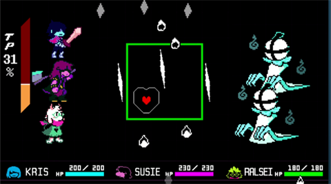 Spamton本体是kris独自面对的那个推销员。首先见到斯潘顿本体以后走非暴力路线,靠交易取胜(跟饶恕一样)