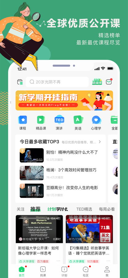 网易公开课手机版是一款非常好用的学习平台。无论是人文、哲学、数理,还是心理、经济等领域的课程都可以在线观看。软件还收录了多个优质的TED演讲资源。