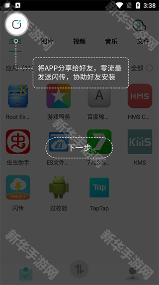 1、将APP分享给好好友,零流量发送闪传,协助好友安装;