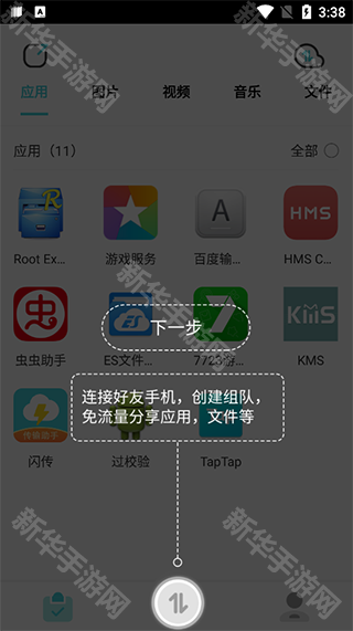 2、连接好友手机,创建组队,免流量分享应用,文件等;