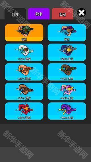 游戏可以里县游玩,而且一开始能使用的角色不多,后期解锁更多角色才变得有趣起来,因为角色只有一条命,所以玩家每一关都需要保证自己不要中枪才能成功通关,快来试试看吧。