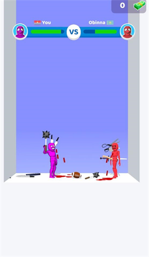 《谁先阵亡》英文名(Who Dies First),是一款双人对战游戏,画风比较魔性,有点像火柴人风格,玩家在游戏中可以装备不同的投掷武器去攻击对方,手指点击投掷方向就可以蓄力投掷了,游戏中为大家装备了有许多恶搞的武器,例如香蕉皮和鸡蛋,需要注意的是,要了解抛物线的原理才能精准地打到对方。