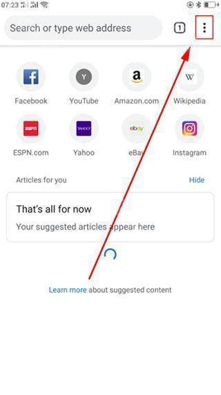1、打开手机谷歌浏览器,点击右上角的菜单按钮