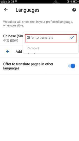 7、在弹出的菜单选项中选择offer to translate功能,这样手机浏览器就显示为中文了