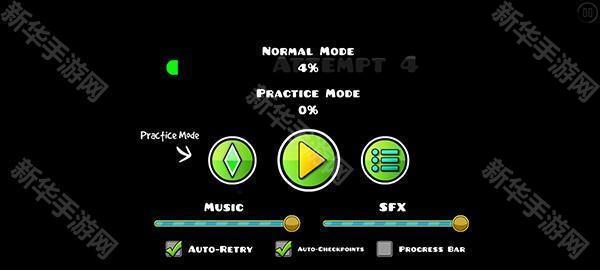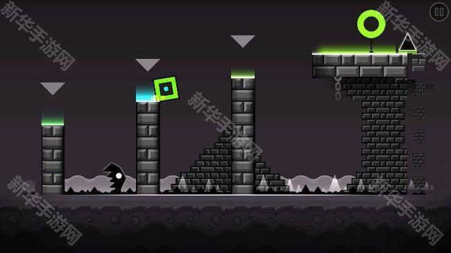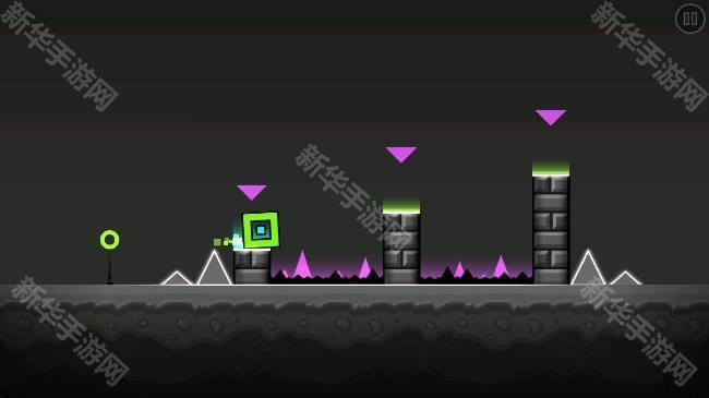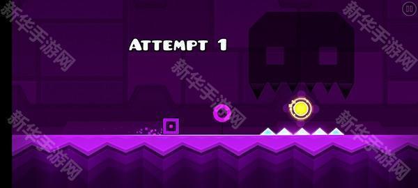 4、新手推荐先从前几关节奏较慢、障碍清晰的关卡熟悉跳跃手感,了解各种地形机制(如三角刺、翻转地面、传送门等)。