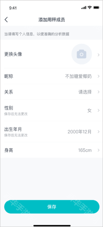 3、填写成员信息(注意性别和出生年月保存后无法更改),填写完成后点击“保存”
