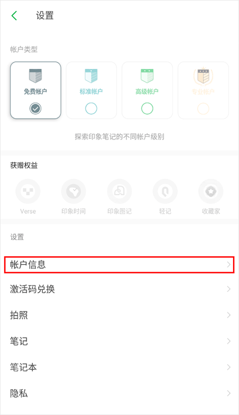 2、点击账户信息;