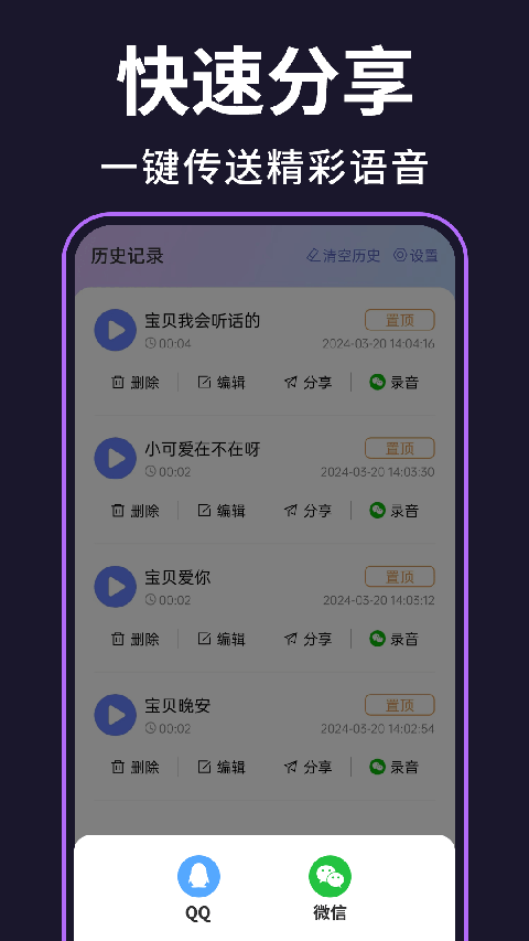 3、还提供了声音保存和分享功能,用户可以将变声后的声音保存到手机或直接分享到社交网络。