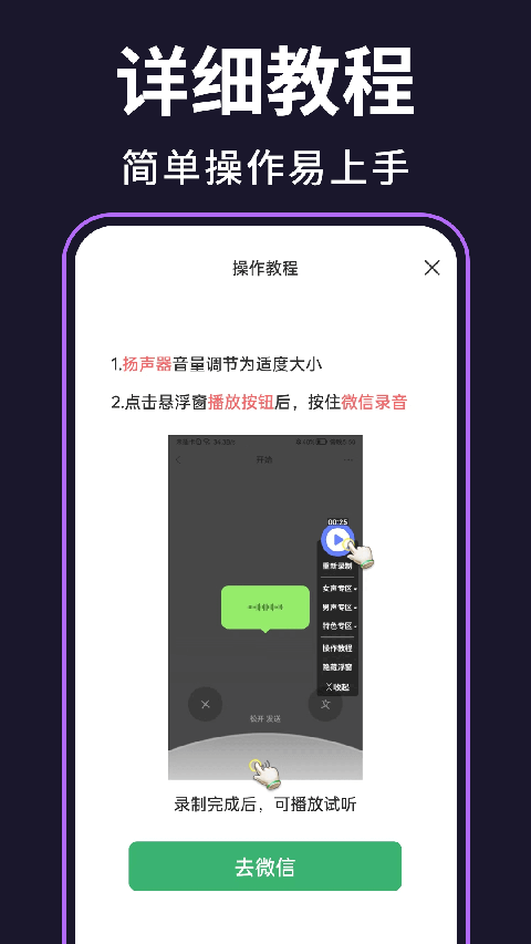 1、支持声音录制功能,用户可以录制自己的声音,并通过软件进行编辑和变声处理。