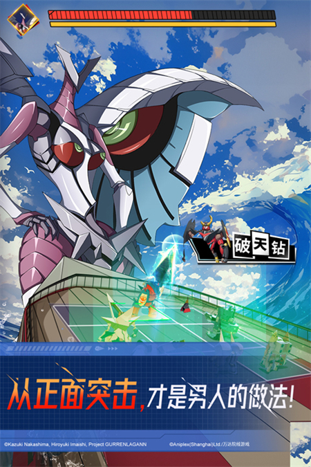 《天元突破红莲螺岩手机版》是由同名动漫改编的一款策略卡牌游戏,对原著的还原度也很高,在这里玩家可以找到许多原剧的机甲人物,而且大量的剧情都是围绕动漫剧情展开的。游戏玩家将随着远征军一起出征,有着超然的打斗场景,玩家还可以和住在底下的挖洞少年西蒙一同出发,去寻找谜团,面对强敌也要合理搭配队伍,发挥兄弟合体的超强绝技,还有招募系统,能够招募更多的人物加入战场。