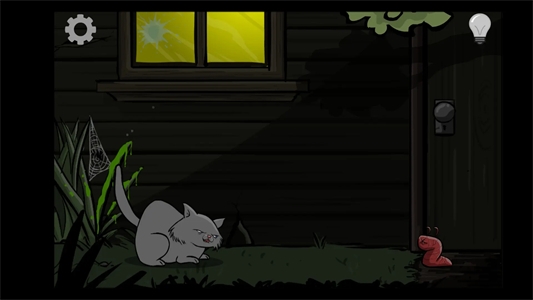 第二关:点门把,猫来,点蛛网,点烂苹果,虫吐浆,猫走,点猫,猫又来,点门上树影,进洞,狂点4个钮,出来,点猫,猫死,点门把,过。